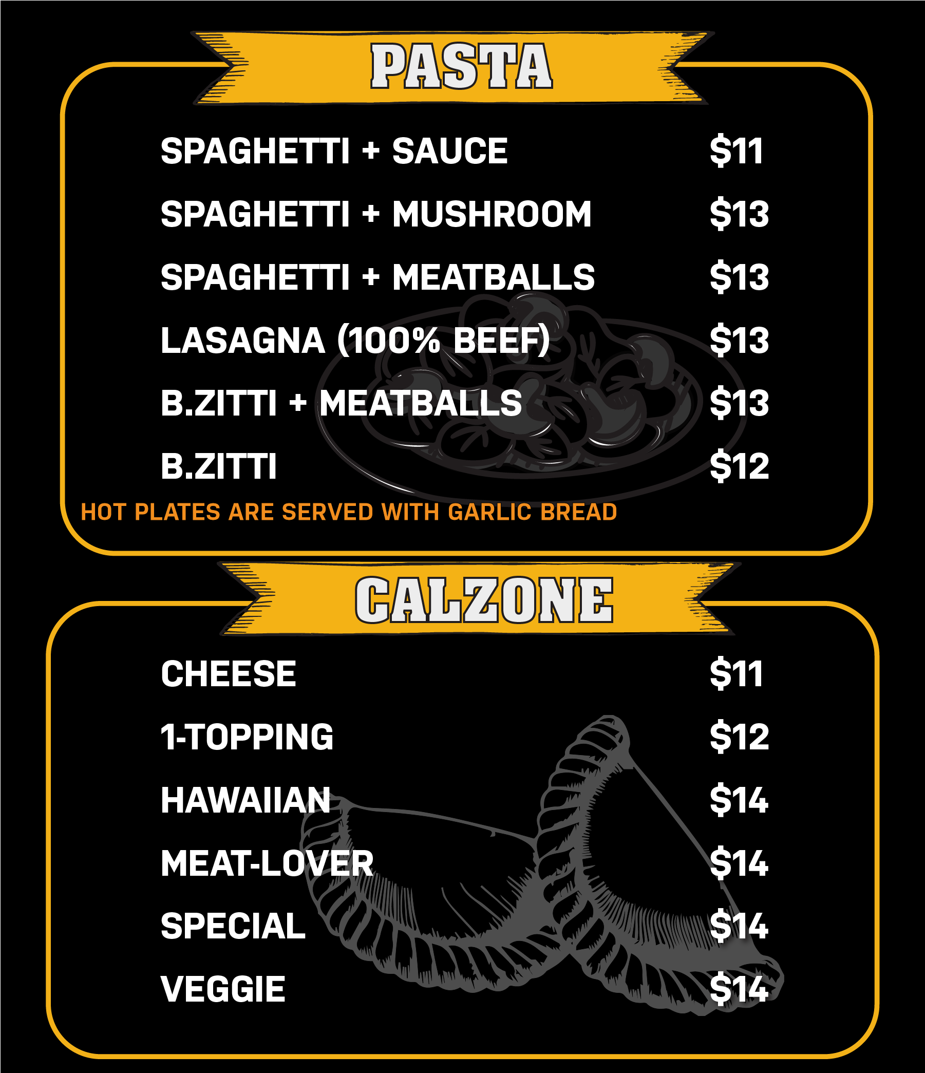 PASTA & CALZONES